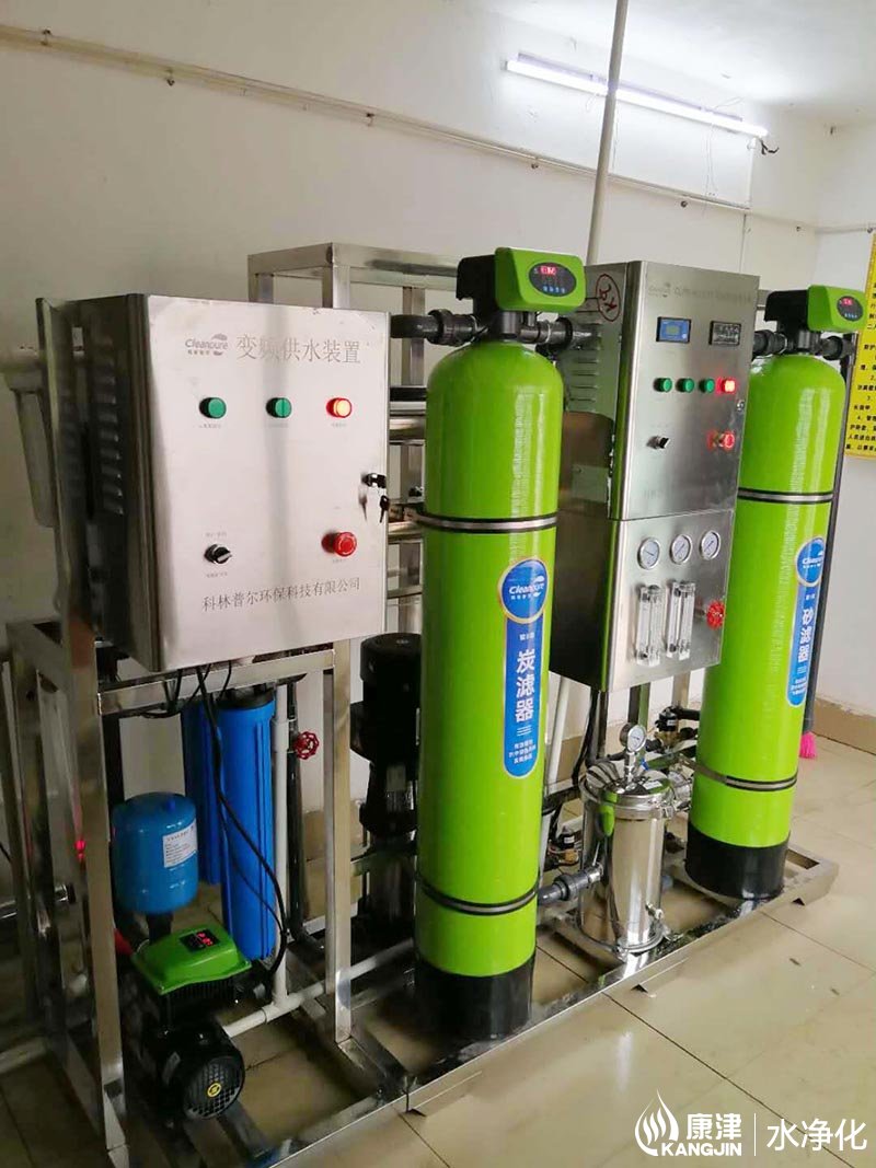項目名稱:來賓鳳凰中心校學生直飲水設備工程 設備名稱:0.5T反滲透純水設備 工藝流程:原水箱-原水泵-石英砂過濾器-活性炭過濾器-保安過濾器-變頻供水...