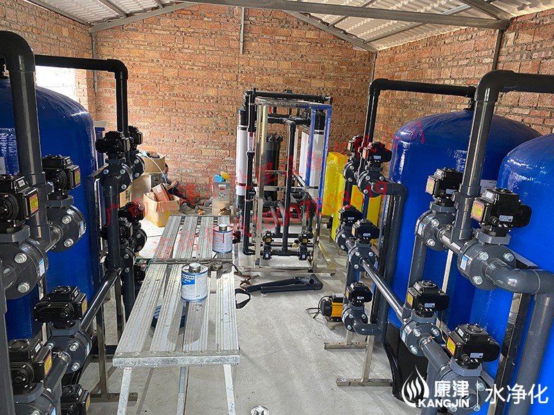 10T/H超濾水處理設備,業主是廣西防城港海水養殖公司,產出的凈水用于漁業養殖使用。超濾水處理設備過濾精度為0.005到0.01微米范圍內,可有效去除水中的微粒、膠體、細菌、熱源及高分子有機物質等。設備廣泛應用于礦泉水制造、食品和醫藥生產、城市中水會用等領域。設備工藝流程。原水來自于大壩,進入保溫水箱后經高壓泵進入預處理系統,根據業主水質情況,預處理部分我們推薦的是砂濾和錳砂濾,主要是為了軟化水質。預處理產水接著進入精密過濾器,主要是PP棉過濾工作,PP棉更換成本低,一般3個月左右檢查一次,看情況更換。超濾是一種以篩分為分離原理,以壓力為推動力的膜分離過程,所以超濾前需要增加壓力泵。產出的凈水到水箱后由業主的抽水泵供應到用水點。在這里說下,我們看到成套設備有一個黃色的桶,它是負責給超濾組件加藥清洗用的,及時清理超濾膜內的雜質,保證膜元件的使用壽命。